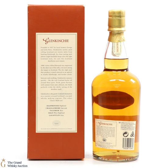 This 10 year old is an older style bottling from Glenkinchie Distillery, that comes presented in the famous orange box - with the classic malt stamp on the front of the box. The Glenkinchie 10 year old has since been replaced by the 12 year old.
