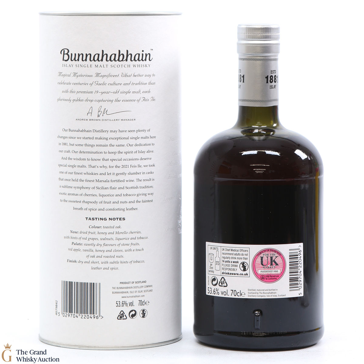 For Feis Ile 2021, Bunnahabhain Distillery released this unique bottling. Distilled back on the 8th of October 2001, this single malt was finished in a cask that once held Marsala fortified wine resulting in a combination of Sicilian flair and Scottish tradition. Bottled on the 19th of January 2021, this is one of only 1333 bottles produced.