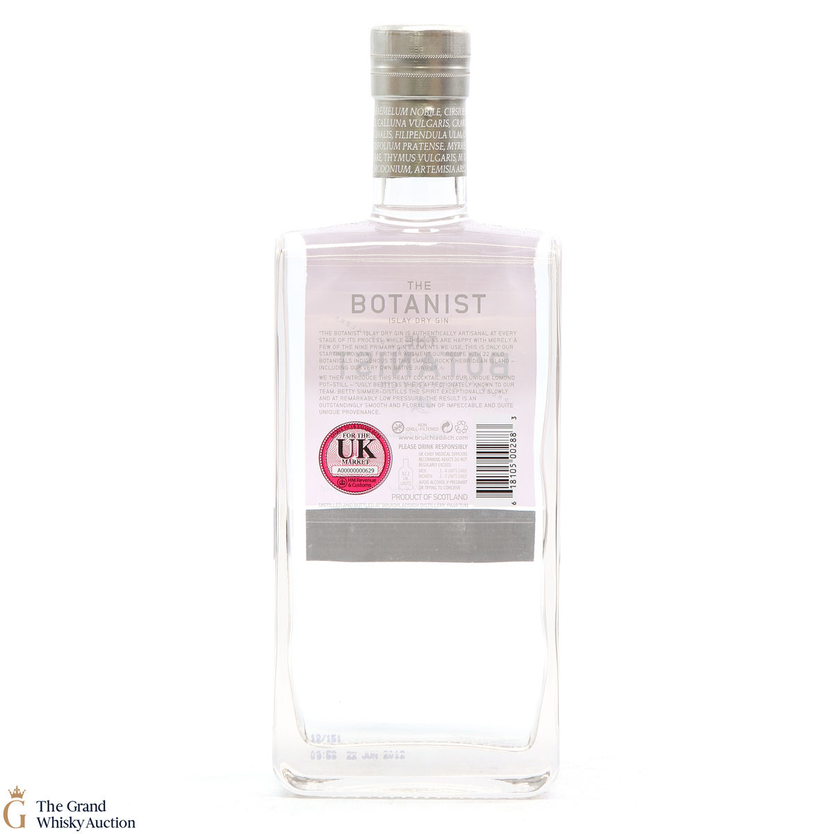 The Botanist Gin made at Bruichladdich, distilled from wheat and infused with a massive collection of botanicals: All of the traditional ones, plus 22 additional, native botanicals which are picked wild on the island of Islay.