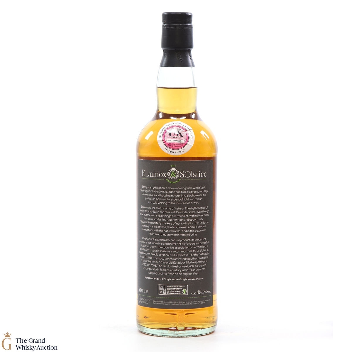 Distilled at Edradour Distillery, this single malt is the first bottling in Decadent Drinks Equinox & Solstice series. To create this whisky, Decadent Drinks vatted together two first fill bourbon barrels containing 10 year old Edradour filled in 2010 and 2003 respectively.