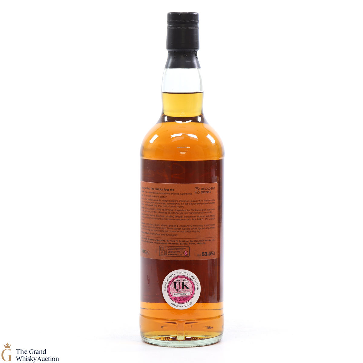 Due to the various ages of bottles and their seals, the condition of liquid is at the buyer's discretion and no claim can be lodged against failure/leakage in transit. Loss and breakage cover is available at 3% of the hammer price as standard. If the lot is not insured, no claim can be lodged against the courier or The Grand Whisky Auction for breakage or loss in transit.