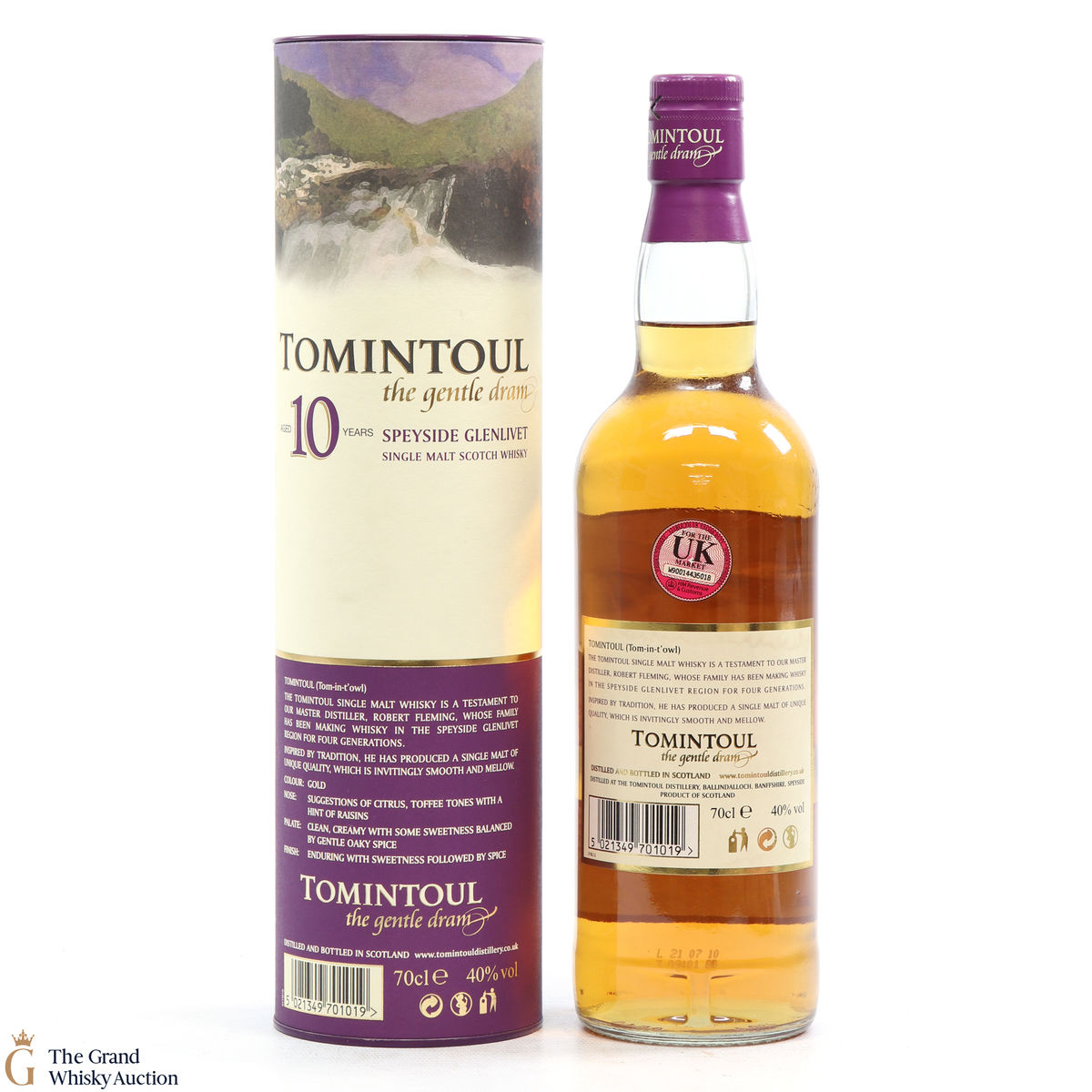 A 10-year-old single malt expression from Tomintoul aged in hand-picked oak barrels. This single malt is known as the gentle dram.