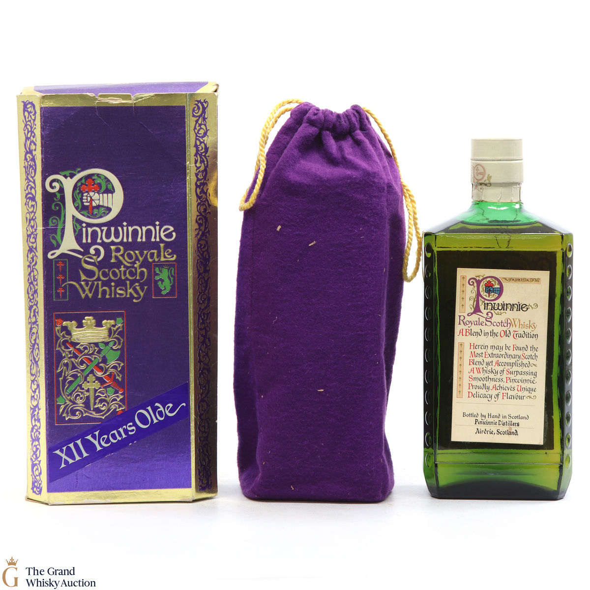 This is an eye-catching older style bottling of Pinwinnie Whisky. Pinwinnei Royale Scotch Whisky is now discontinued and increasingly hard to find.
