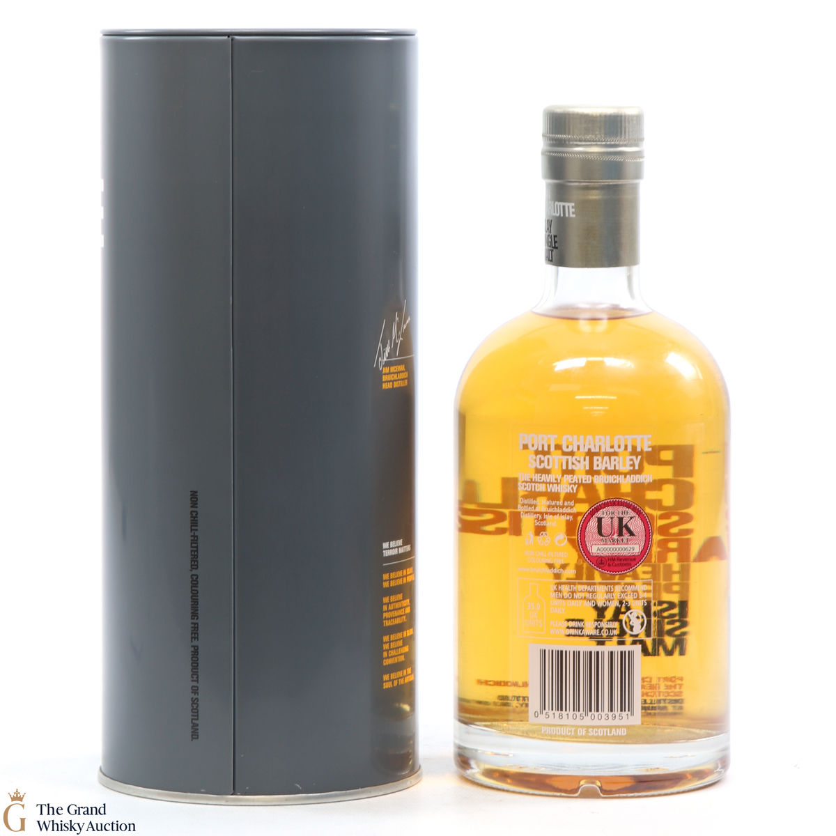 Peated to a heavyweight 40ppm, Port Charlotte Scottish Barley is a cuvee crafted from cask profiles originally selected by master distiller Jim McEwan. It has been trickle distilled using only 100% Scottish Barley then matured in the village of Port Charlotte, before being bottled at the distillery using Islay spring water. It is a dram full of depth and complexity; the flavourful peat & the smokey sweetness of the barley contrasts elegantly with the marine freshness of the spirit and the richness of toffee and vanilla.