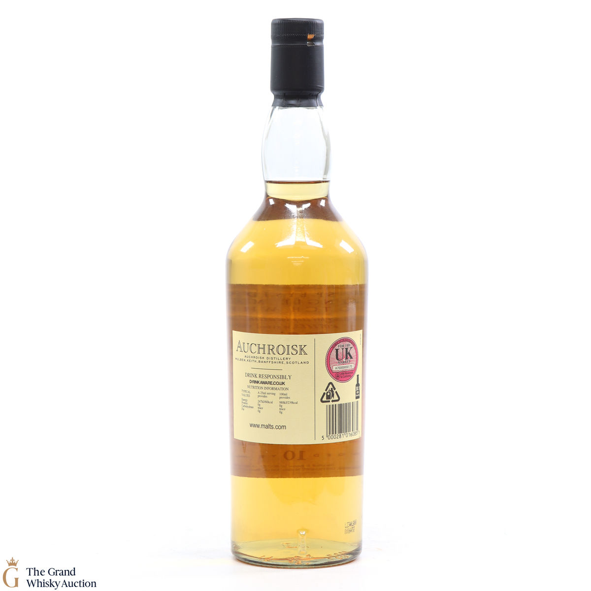 Due to the various ages of bottles and their seals, the condition of liquid is at the buyer's discretion and no claim can be lodged against failure/leakage in transit. Loss and breakage cover is available at 3% of the hammer price as standard. If the lot is not insured, no claim can be lodged against the courier or The Grand Whisky Auction for breakage or loss in transit.