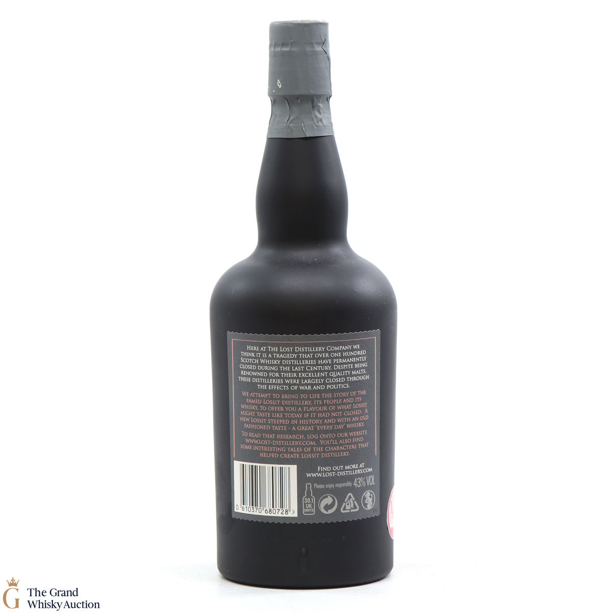 Due to the various ages of bottles and their seals, the condition of liquid is at the buyer's discretion and no claim can be lodged against failure/leakage in transit. Loss and breakage cover is available at 3% of the hammer price as standard. If the lot is not insured, no claim can be lodged against the courier or The Grand Whisky Auction for breakage or loss in transit.