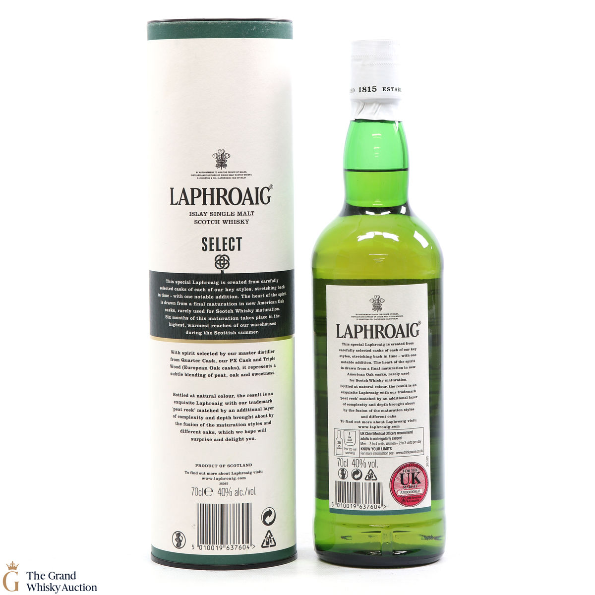 Laphroaig Select has been created using a combination of whisky from a number of different types of cask, including Oloroso Sherry butts, white American oak, Pedro Ximenez seasoned hogsheads, quarter casks and first-fill bourbon casks.
