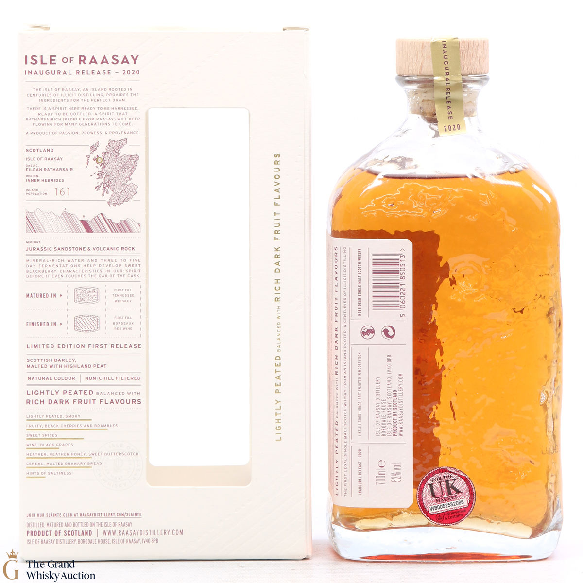 The inaugural release from the Isle of Raasay distillery is a limited edition release matured in first-fill American oak, and finished in 21 exclusive first fill Bordeaux red wine casks. They have created an elegant, lightly peated (15-20 Peat or Phenol Parts Per Million). Bottled at 52% and in a unique glass bottle which captures the island's geology.