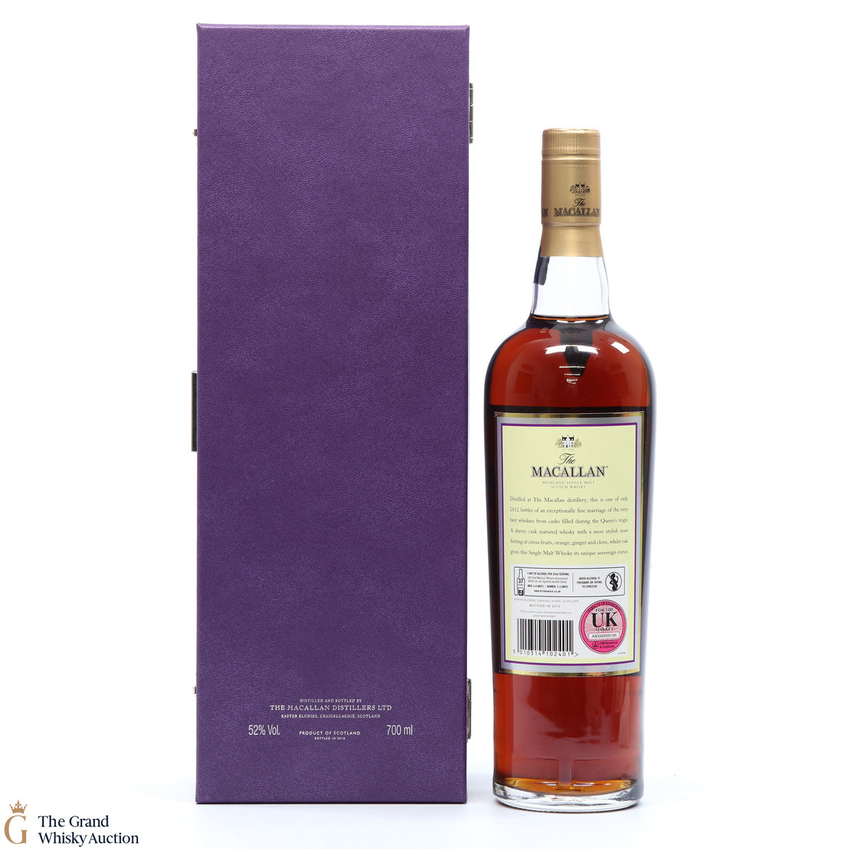A highly desirable, limited-edition release from Macallan to commemorate the Golden Jubilee of Her Majesty Queen Elizabeth II (1952-2012). This is one of 2012 bottles. Drawn from its cask on the 8th of February 2012, by no coincidence the date of Her Majesty’s accession, this sherry cask-matured expression was bottled at 52% ABV. It is an instant classic and highly collectable.
