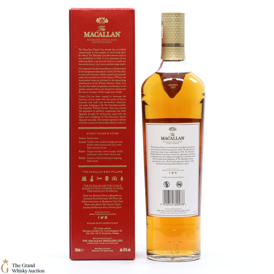 The Macallan Classic Cut - 2020 edition is the fourth release in the limited annual series. It was matured exclusively in hand-picked sherry oak casks from Jerez, Spain, before being bottled at 55% ABV.