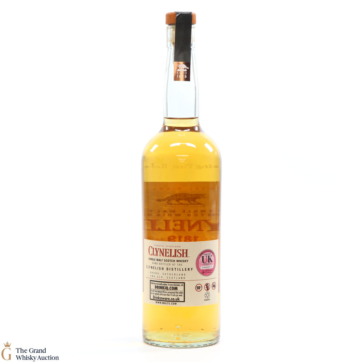 Due to the various ages of bottles and their seals, the condition of liquid is at the buyer's discretion and no claim can be lodged against failure/leakage in transit. Loss and breakage cover is available at 3% of the hammer price as standard. If the lot is not insured, no claim can be lodged against the courier or The Grand Whisky Auction for breakage or loss in transit.