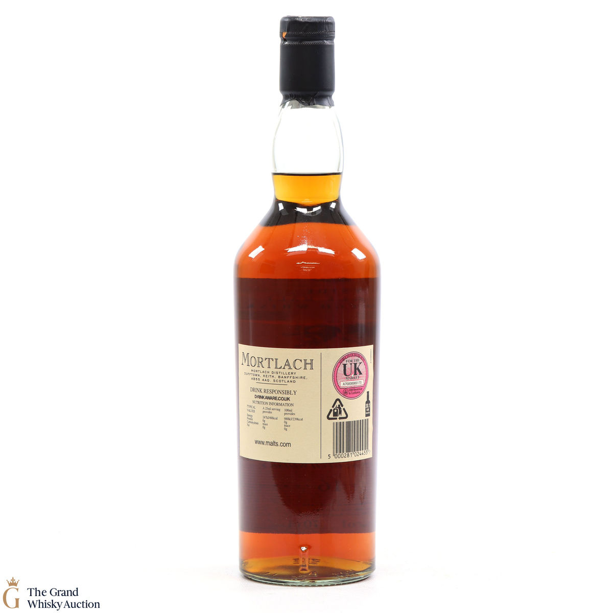 Due to the various ages of bottles and their seals, the condition of liquid is at the buyer's discretion and no claim can be lodged against failure/leakage in transit. Loss and breakage cover is available at 3% of the hammer price as standard. If the lot is not insured, no claim can be lodged against the courier or The Grand Whisky Auction for breakage or loss in transit.
