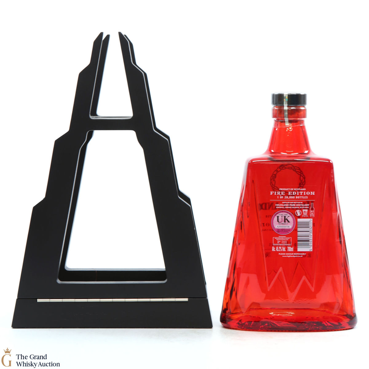 This stunning Highland Park 15 year old single malt follows the 'Ice' edition to complete this Highland Park two-part series. The 'Fire' edition celebrates Muspelheim, the glowing Norse fire realm of destruction. The malt was matured in refill Port casks and bottled at 45.2% abv. It's presented in a cradle shaped like a mountain.