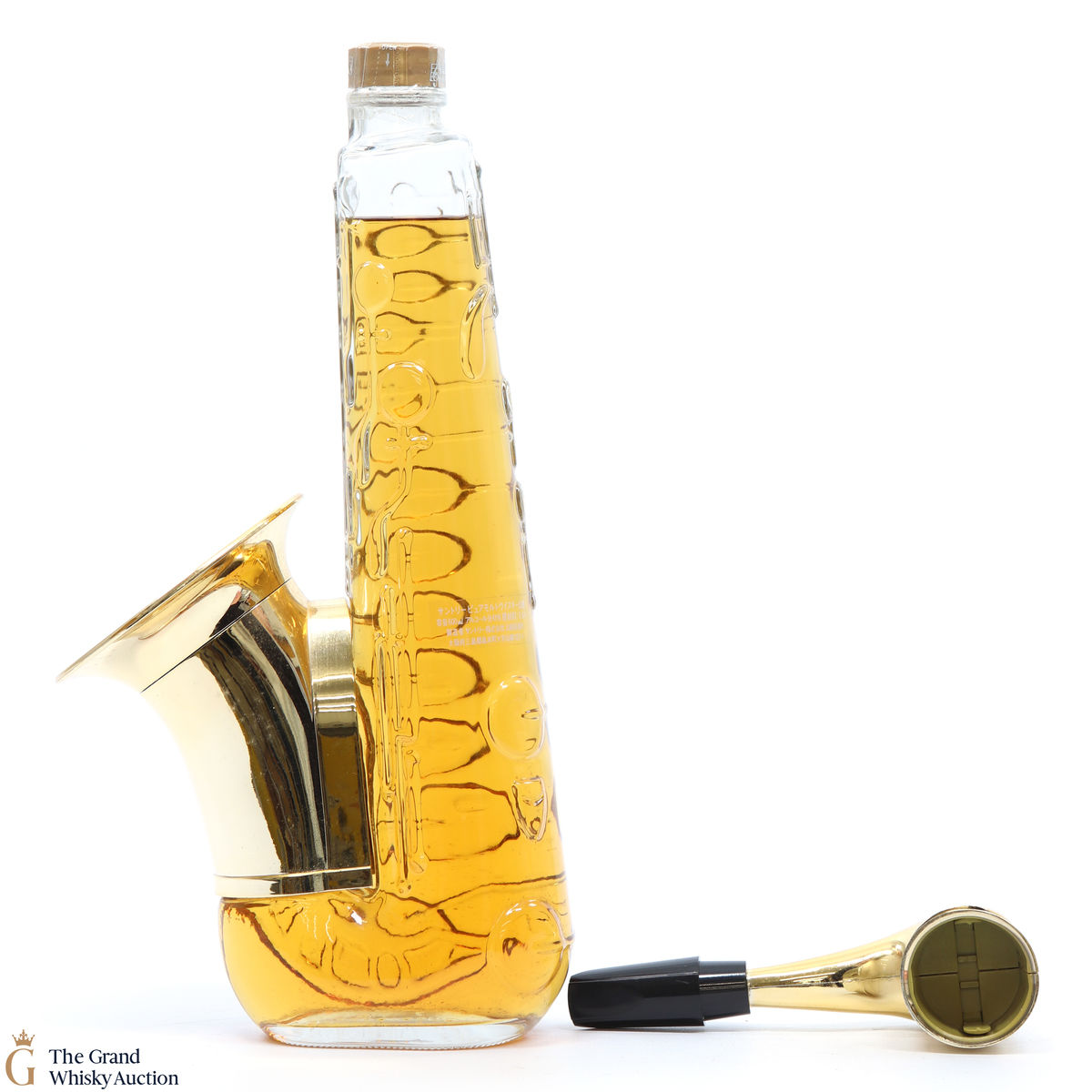 A Saxophone shaped decanter of whisky by Suntory filled with 12-Year-Old whisky.