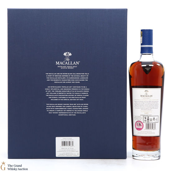Part of The Anecdotes of Ages Collection, this is an extraordinary art and whisky collaboration with Sir Peter Blake. Being the third collaboration between the Macallan Distillery and Sir Peter Blake, this single malt was created to commemorate Sir Peter Blake's visit to The Macallan Estate. An Estate, a Community and a Distillery tells the story of some of the colourful characters from the distilleries past and present and features a label designed by Sir Peter Blake.