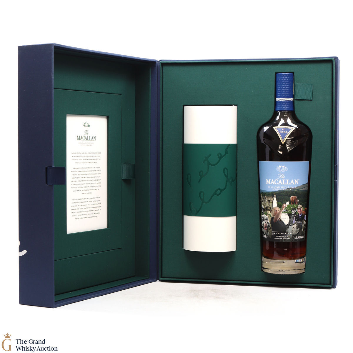 Along with this unique bottle of whisky is a scroll of artwork showing Sir Peter Blake's distinct style and a certificate detailing the history and heritage on which Sir Peter's art was based. There is also a piece of tracing paper which provides information on each character from The Macallan's history that Sir Peter chose to include in his art.