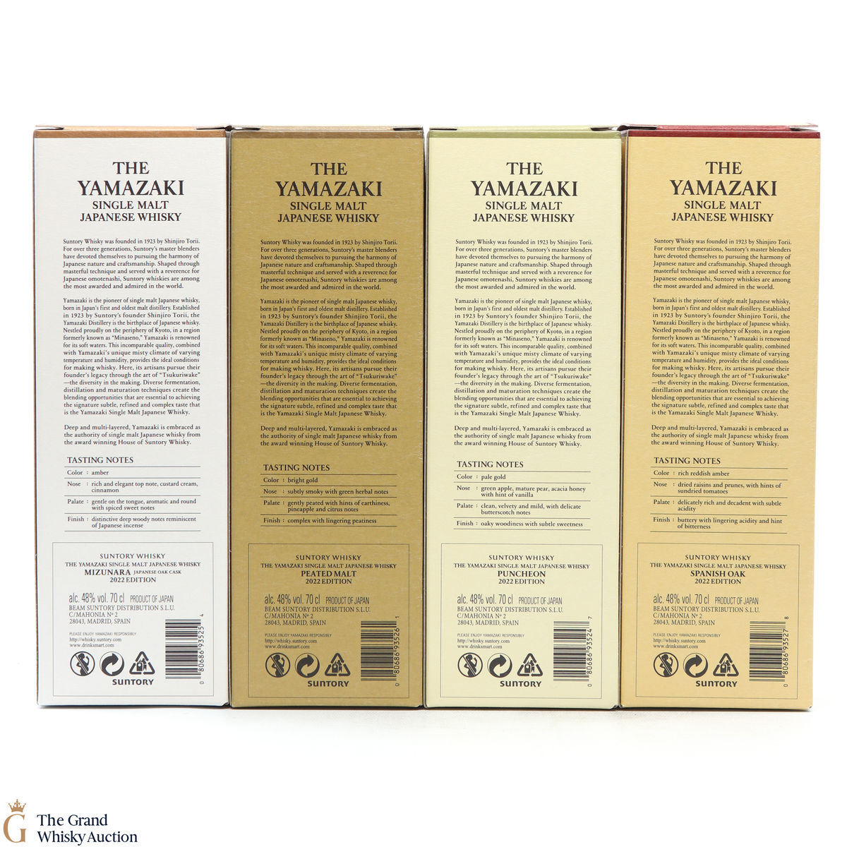 Yamazaki - Spanish Oak (2022): This Yamazaki Single Malt is one of the Yamazaki 2022 limited edition series editions. Matured in a Spanish oak cask, bottled as part of the Tsukuriwake selection. 70cl, 48%.