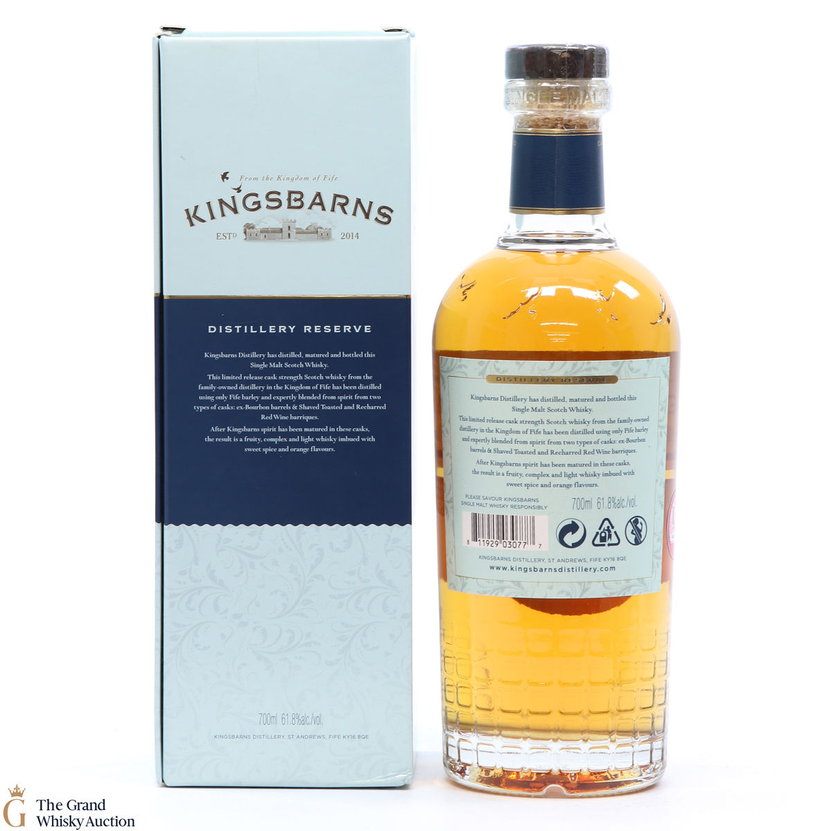Distilled at the Kingsbarn Distillery, this limited release single malt was matured in ex-bourbon barrels and shaved, toasted and re-charred red wine barriques from Portugal. Bottled at the cask strength of 61.8% ABV, this is the 2021 Distillery Reserve.