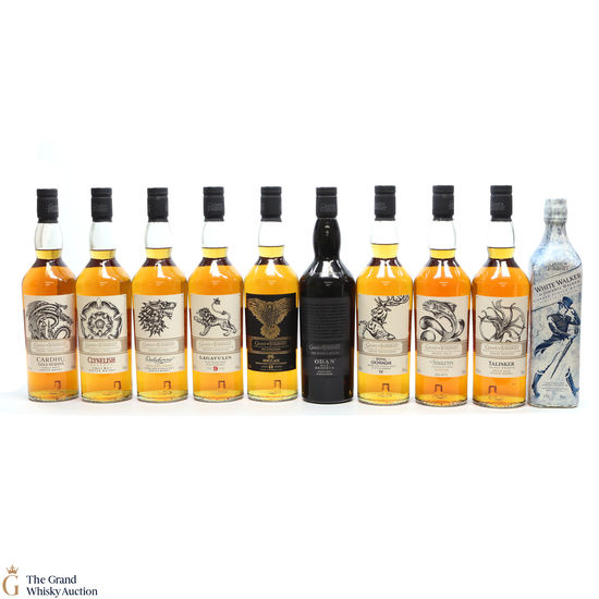 Game of Thrones series plus Johnnie Walker White Walker Game of Thrones edition, Song of Fire and Mortlach, Six Kingdoms edition. This lot includes 10 x 70cl.