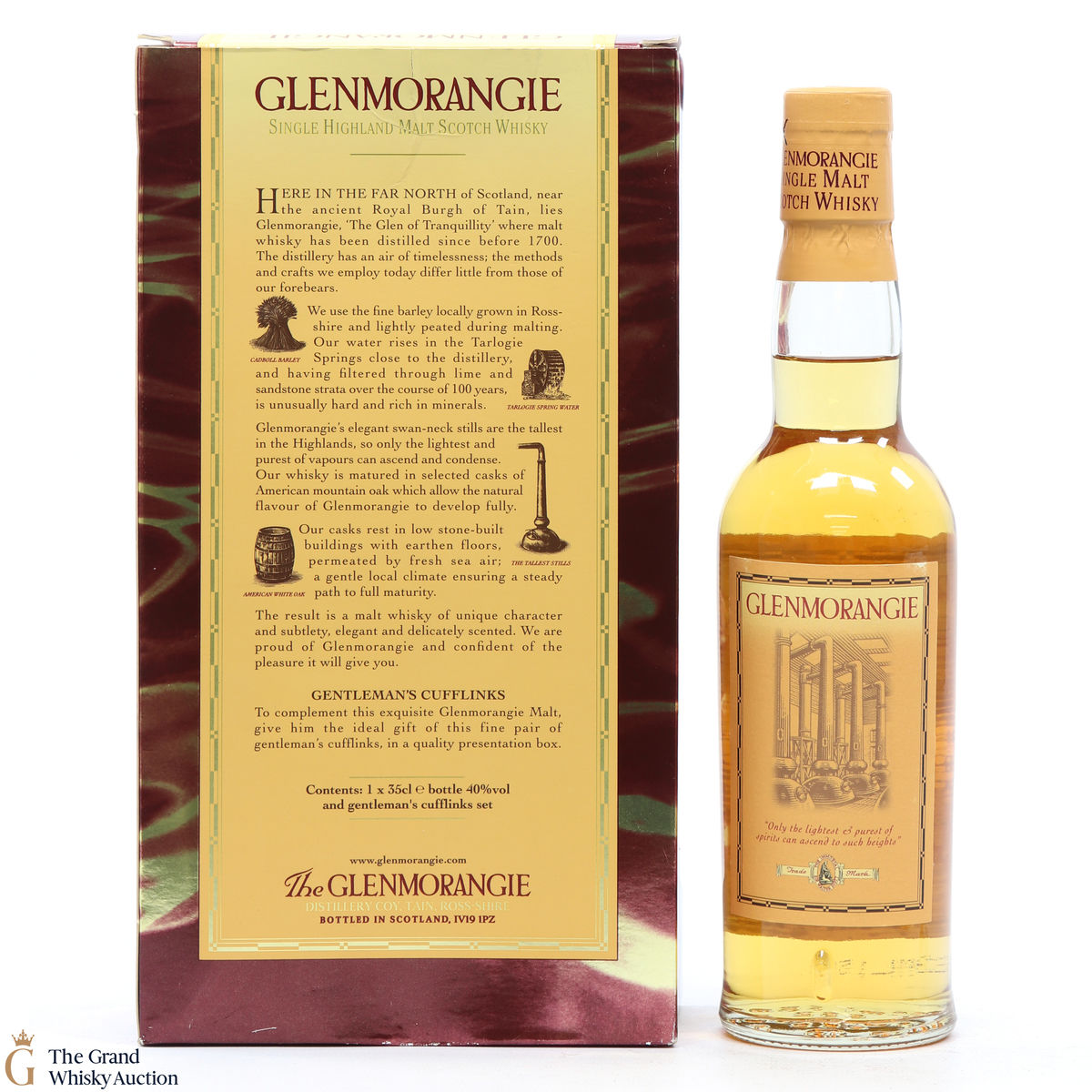 A half bottle of Glenmorangie 10 year old from the 1990's 'handcrafted by the 16 men of Tain.' This lot comes with branded cufflinks.