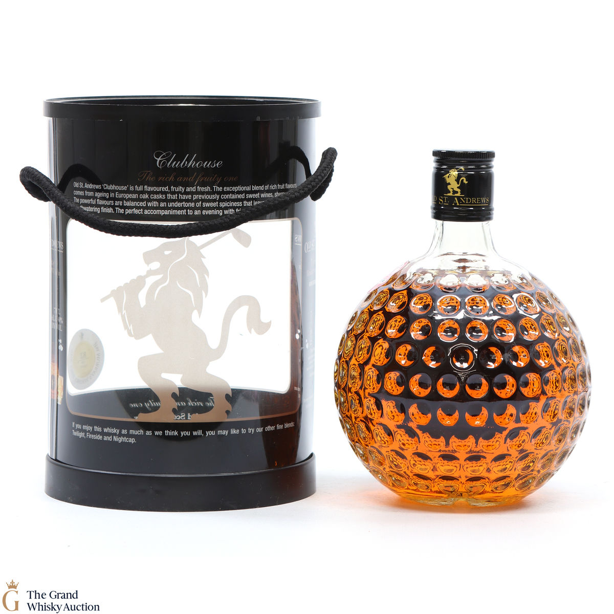 Old St Andrews Clubhouse, a blended whisky in the bottle form of a golf ball-shaped decanter.