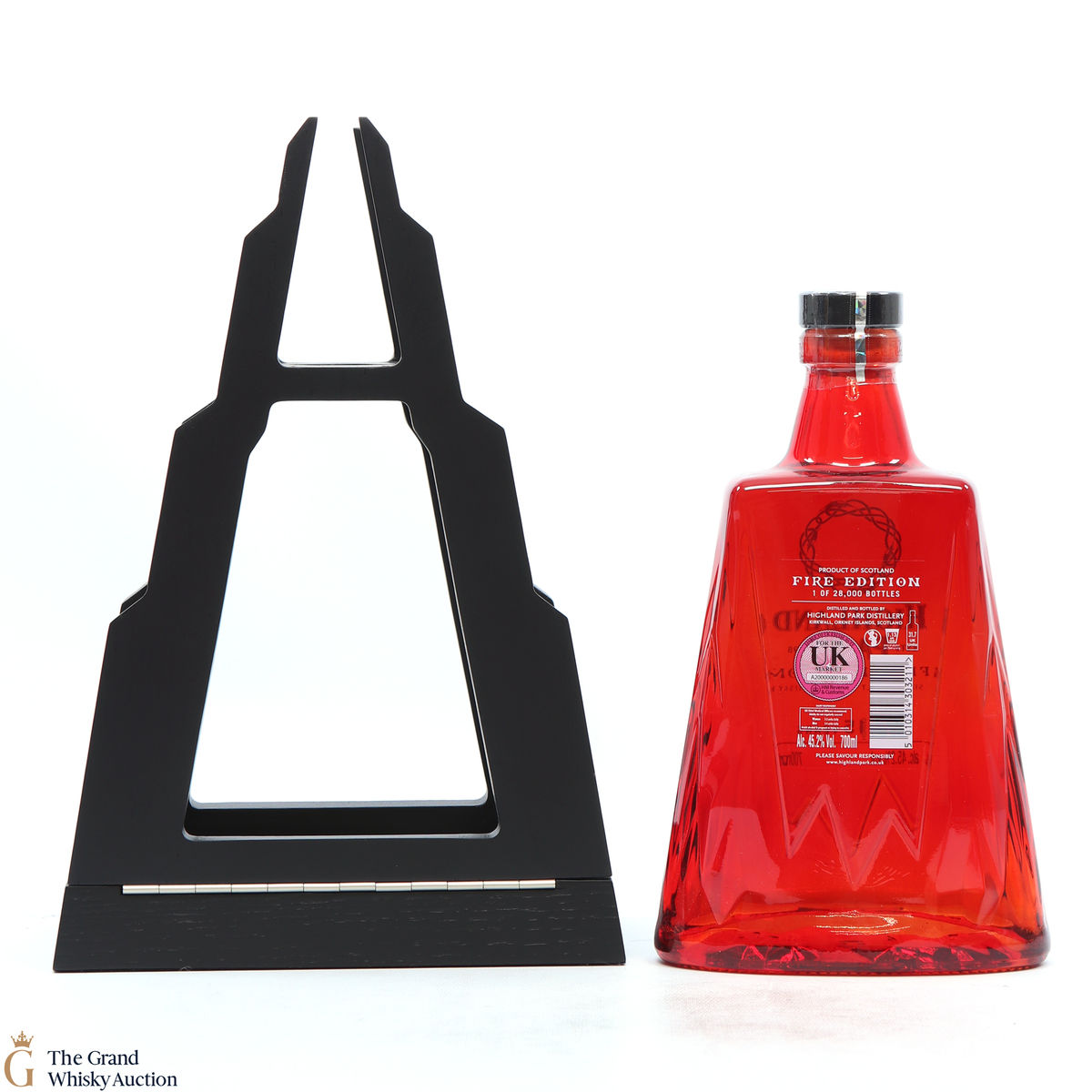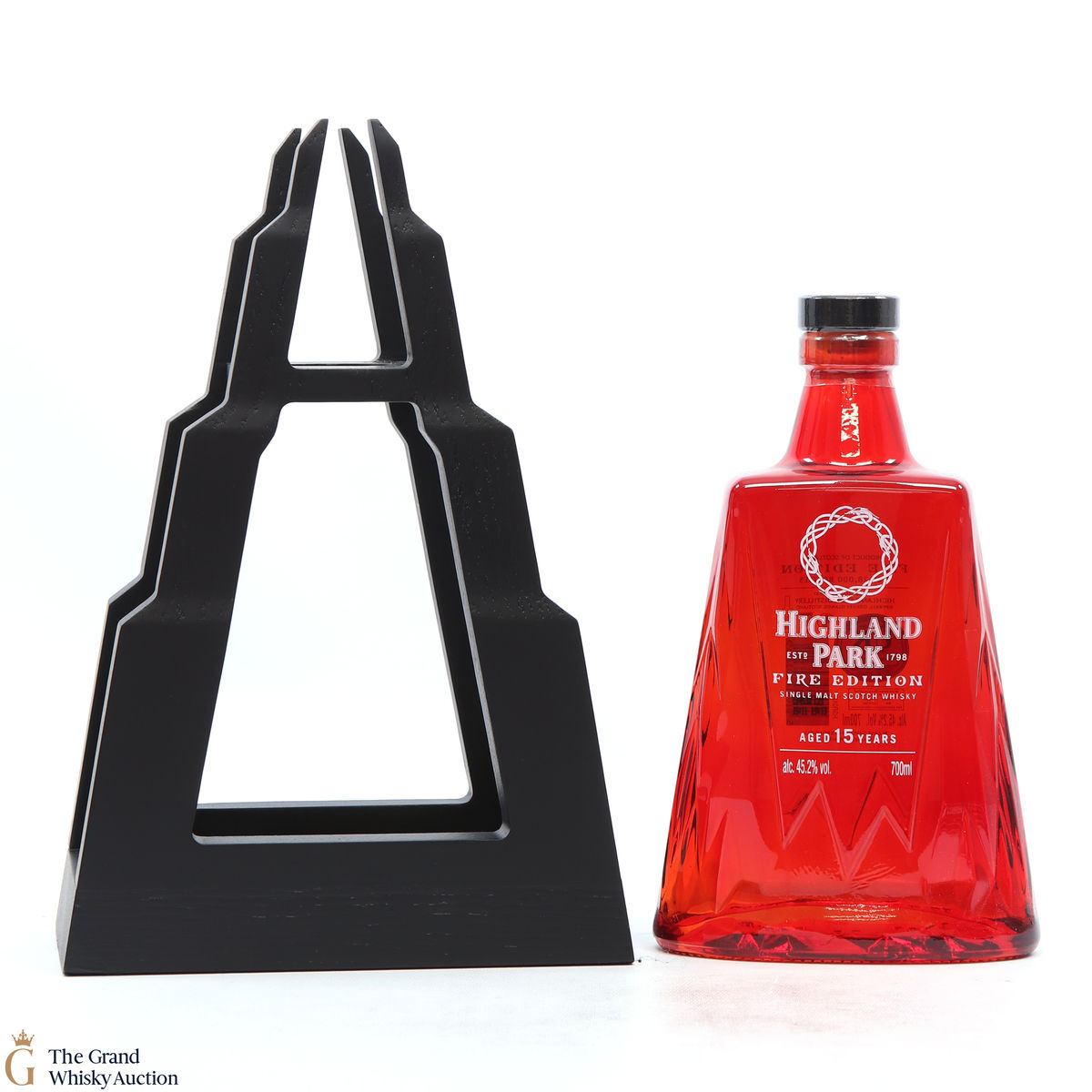 This stunning Highland Park 15 year old single malt follows the 'Ice' edition to complete this Highland Park two-part series. The 'Fire' edition celebrates Muspelheim, the glowing Norse fire realm of destruction. The malt was matured in refill Port casks and bottled at 45.2% abv. It's presented in a cradle shaped like a mountain.