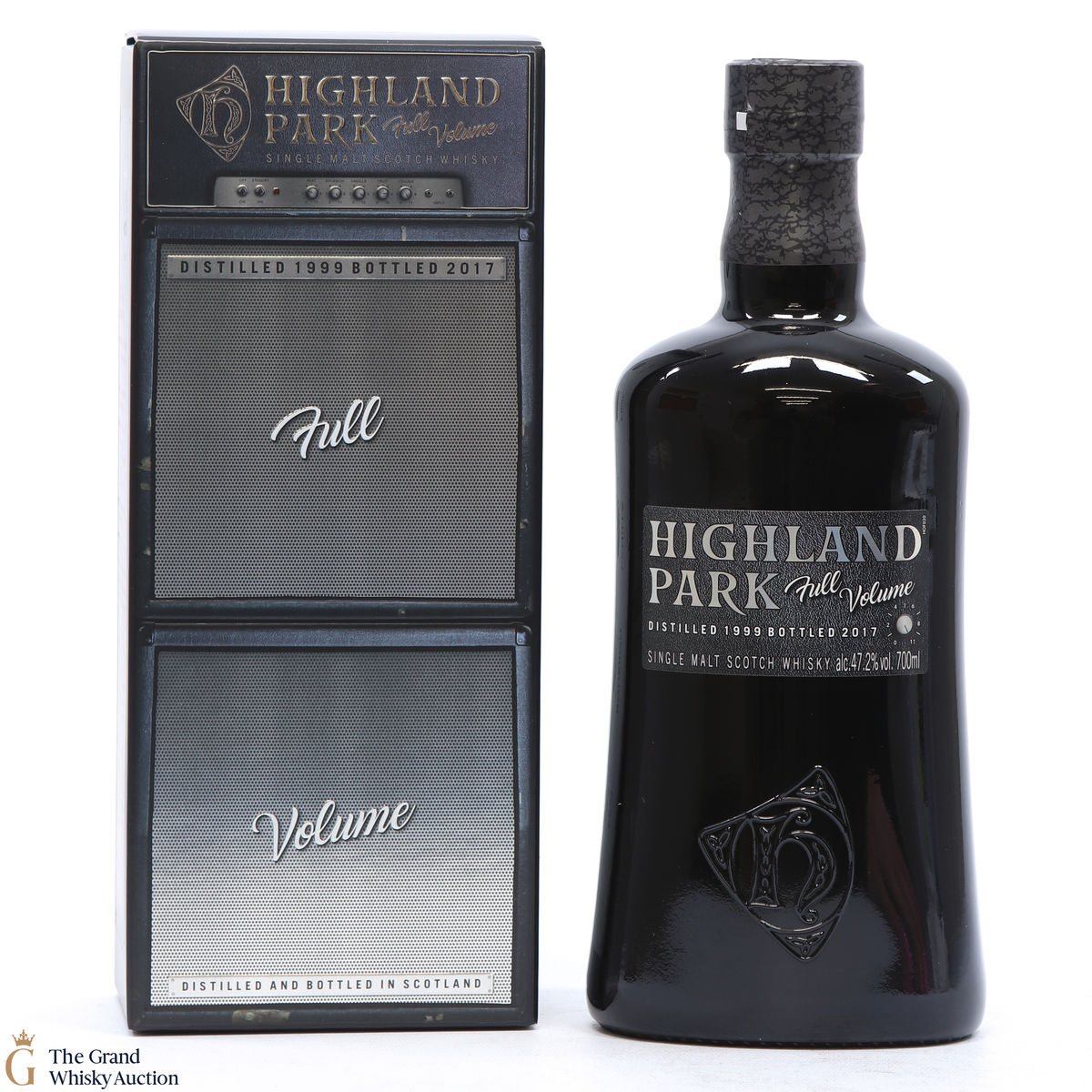 Full Volume by Highland Park was distilled in 1999 and bottled in 2017 from 481 casks. The single malt was matured exclusively in first-fill bourbon casks and was bottled at 47.2% ABV and comes presented in a themed presentation box resembling speaker.