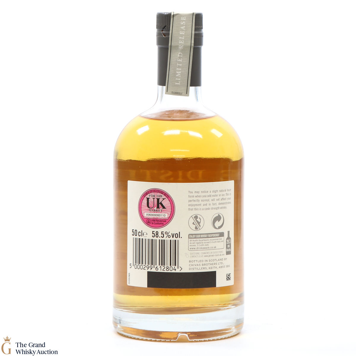 Due to the various ages of bottles and their seals, the condition of liquid is at the buyer's discretion and no claim can be lodged against failure/leakage in transit. Loss and breakage cover is available at 3% of the hammer price as standard. If the lot is not insured, no claim can be lodged against the courier or The Grand Whisky Auction for breakage or loss in transit.