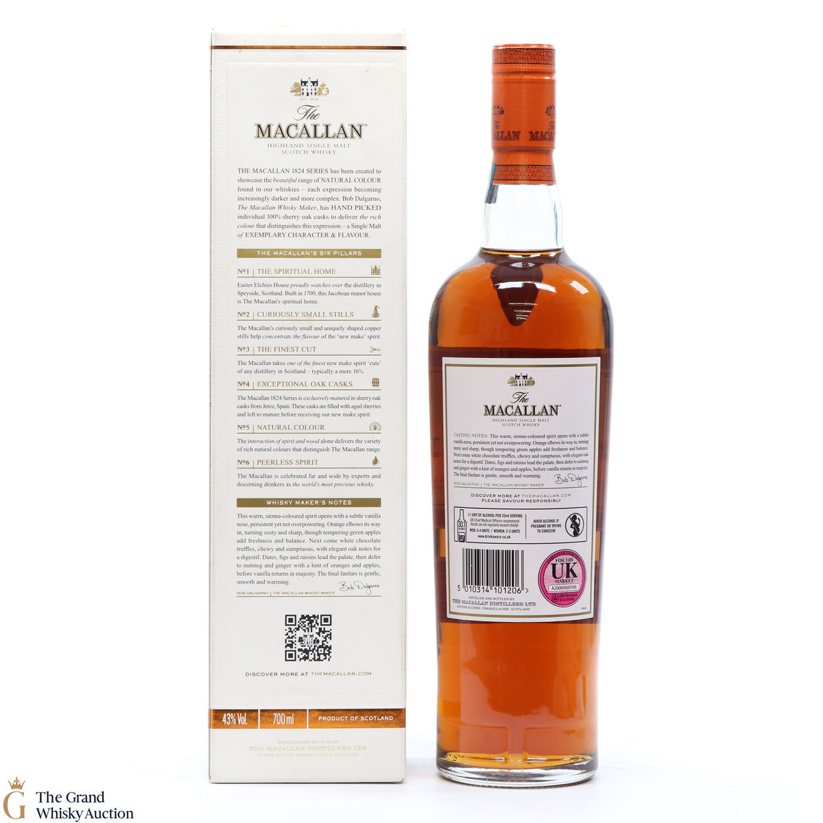 The Macallan 1824 Series celebrates natural colour. The most distinctive and defining characteristic of Macallan is the sherry-seasoned oak casks that are used to mature the whisky. This series shows commitment to 100% natural colour, drawn from wood. The colour of each expression becomes deeper as the range progresses.