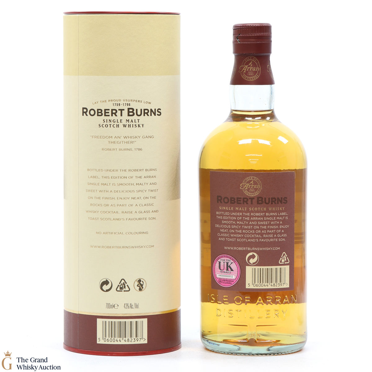 Bottled under the Robert Burns label this bottling of the Arran Single Malt is smooth, malty and sweet with a delicious spicy twist on the finish. "Raise a glass and toast Scotland favourite son."