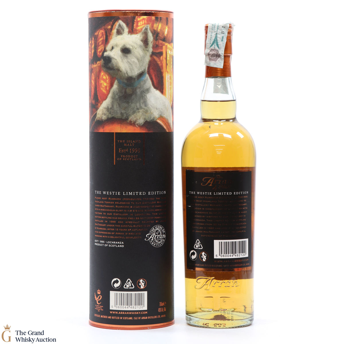This limited edition is the third in the Icons of Arran series, this bottle depicts Ruaraidh, Arran's beloved westie.