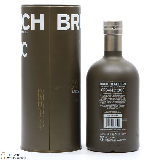 A fully organic Bruichladdich 2003 - a century ago most barley was organically grown; natural fertilisers – seaweed, peat and manure – were harnessed in a way that respected the year’s agricultural cycle. 2003 was a particularly fine harvest of Chalice barley for William rose at Culblair Farm. Supreme quality barley combined with a slow trickle-distillation to do it justice, and new oak has resulted in Bruichladdichs creamiest release yet. This is a limited edition release of 15,000 numbered bottles and Bruichladdichs first organic release - The name means 'In the Traditional Way.'