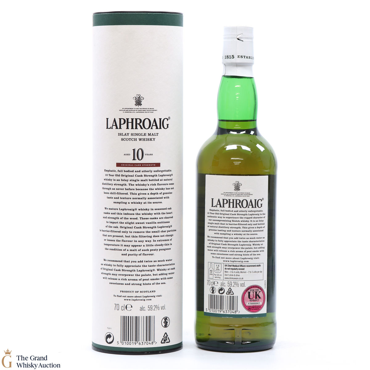 This original cask strength bottling of the medicinal 10 year old from Islay's bestselling distillery, Laphroaig. In making Laphroaig, malted barley is dried over a peat fire. The smoke from this peat, found only on Islay, gives Laphroaig its particularly rich flavour.