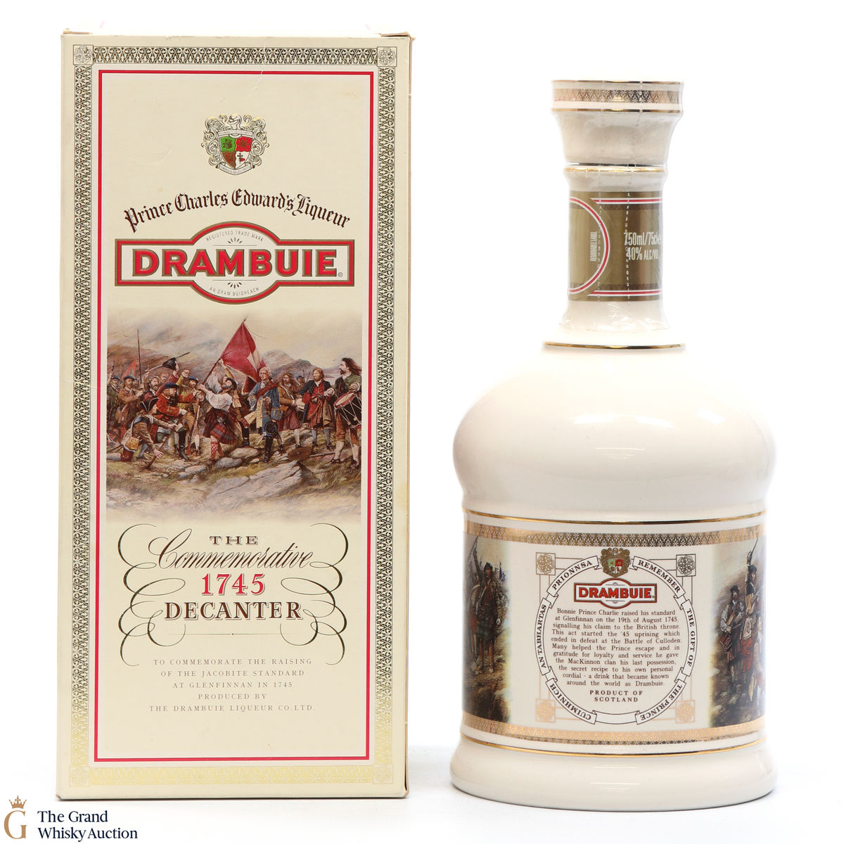 This porcelain wade was decanted from Drambuie Liqueur Co Ltd to commemorate the raising of the Jacobite Standard at Glenfinnan in 1745.