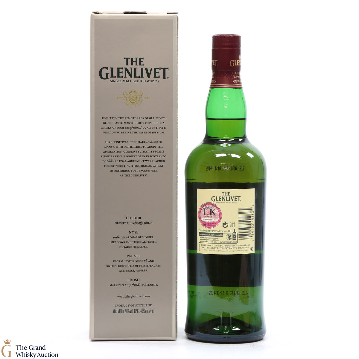Due to the various ages of bottles and their seals, the condition of liquid is at the buyer's discretion and no claim can be lodged against failure/leakage in transit. Loss and breakage cover is available at 3% of the hammer price as standard. If the lot is not insured, no claim can be lodged against the courier or The Grand Whisky Auction for breakage or loss in transit.