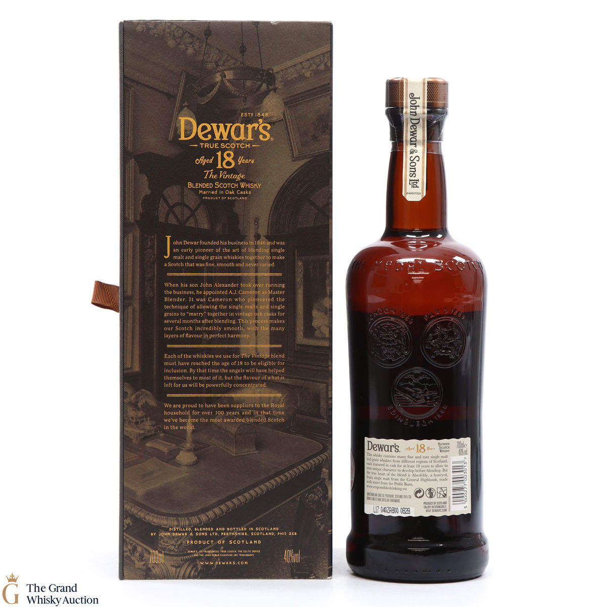 Due to the various ages of bottles and their seals, the condition of liquid is at the buyer's discretion and no claim can be lodged against failure/leakage in transit. Loss and breakage cover is available at 3% of the hammer price as standard. If the lot is not insured, no claim can be lodged against the courier or The Grand Whisky Auction for breakage or loss in transit.