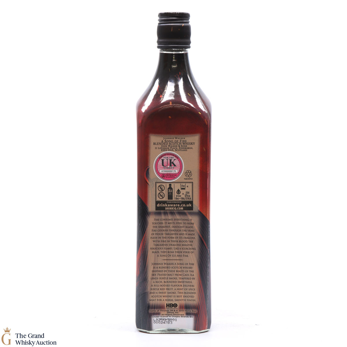 A limited-edition celebration and ode to Game of Thrones, Johnnie Walker A Song of Fire. The subtle notes of the smoke and peated malts from the Caol Ila distillery within the blend pay homage to the Dragons of House Targaryen.