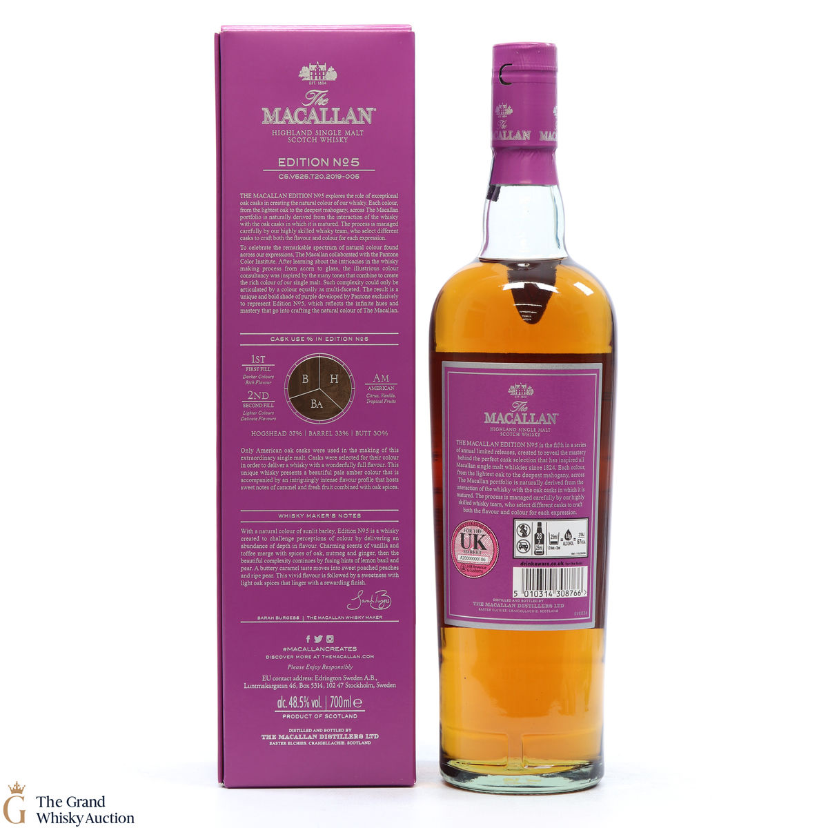 The fifth release in the Edition Series from The Macallan, The Macallan Edition No. 5 celebrates The Macallan’s extensive natural colour spectrum and the intricate whisky-making process, in partnership with masters at the Pantone Color Institute™ to create a unique shade of purple that features on the packaging.