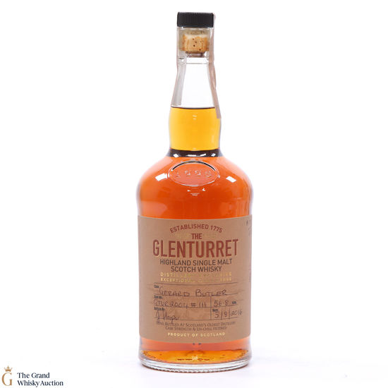 This bottle of Glenturret single malt was bottled in 2016 at 56.8% volume. This whisky was held in cask GTUR 2004 #111, named ''Gerard Butler". Only 600 bottles were produced from this barrel.