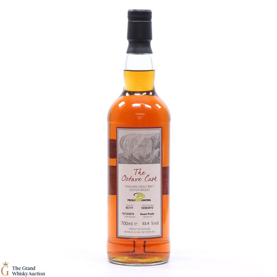 This single malt whisky was distilled in 2012 and bottled in 2019 at 53.4% volume for Stuart Presly of Presly Pest Control, Inverurie.