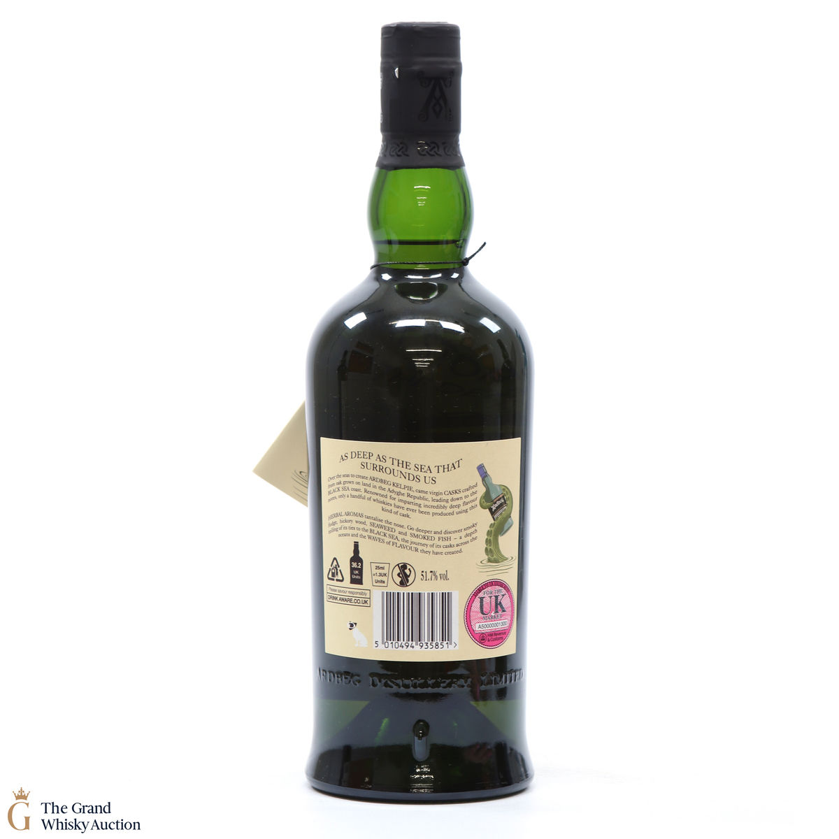 This is a committee exclusive release of the Ardbeg Kelpie, a single malt released in 2017. It was matured in casks made from virgin Black Sea oak and more traditional bourbon casks. The Committee Release is bottled at the higher strength of 51.7% ABV (while the standard Ardbeg Kelpie has bottled at 46% ABV).