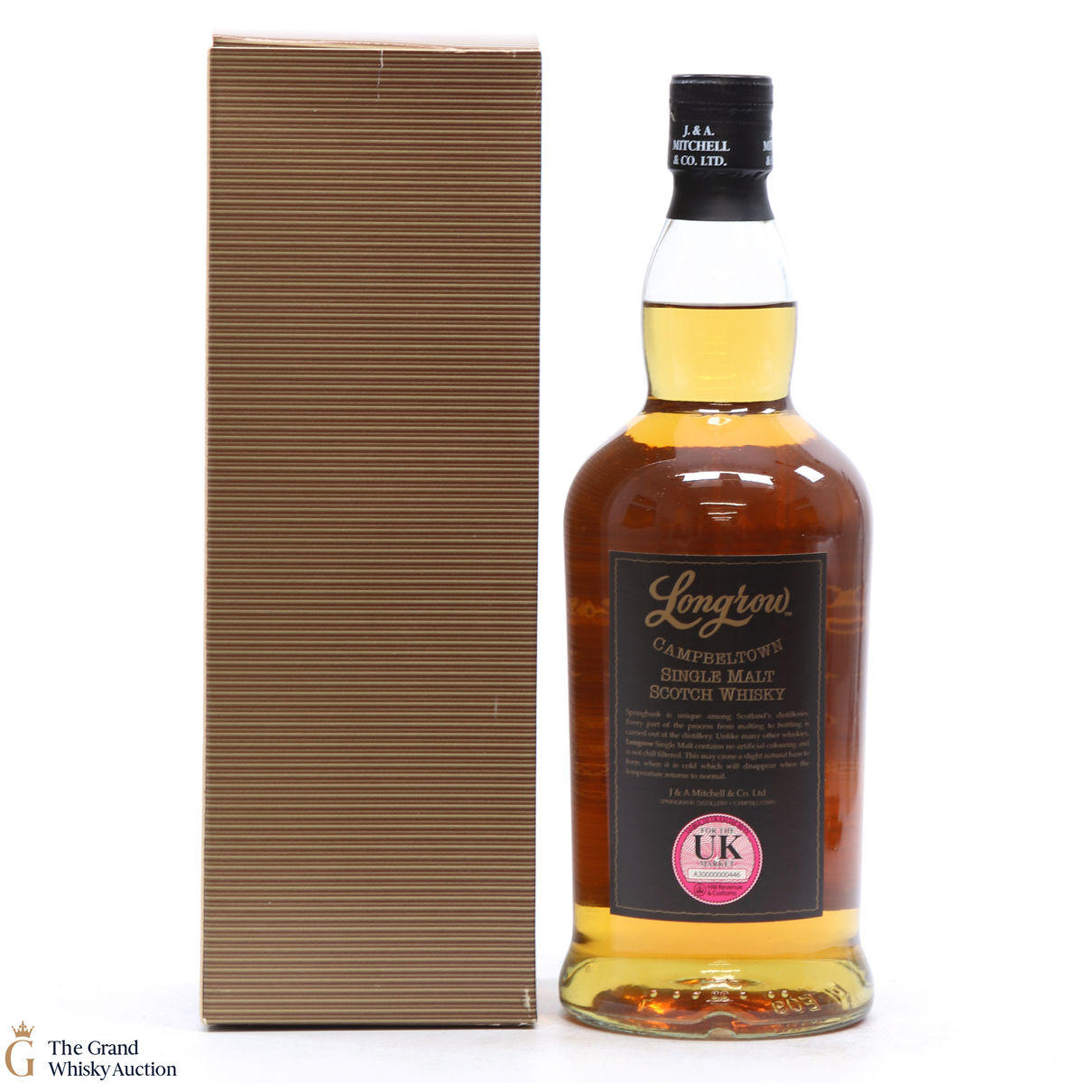A bottle of Longrow CV which used to be Longrow's entry-level whisky. Longrow is Springbank's heavily peated whisky - this is a no age statement expression. It was named Best Peated Malt at the 2010 Malt Maniacs Awards.