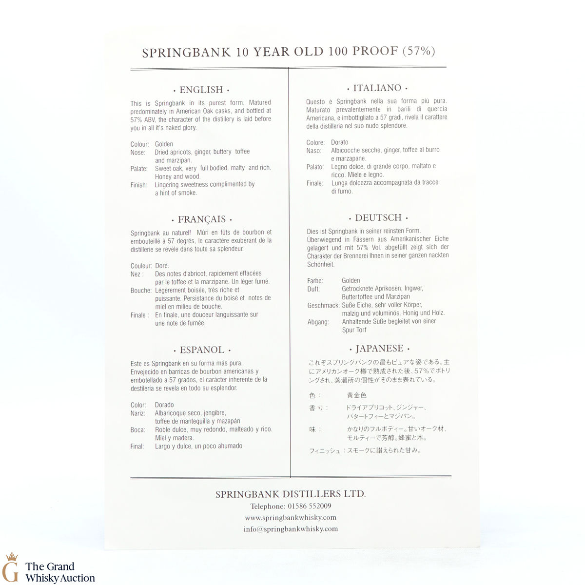 Due to the various ages of bottles and their seals, the condition of liquid is at the buyer's discretion and no claim can be lodged against failure/leakage in transit. Loss and breakage cover is available at 3% of the hammer price as standard. If the lot is not insured, no claim can be lodged against the courier or The Grand Whisky Auction for breakage or loss in transit.