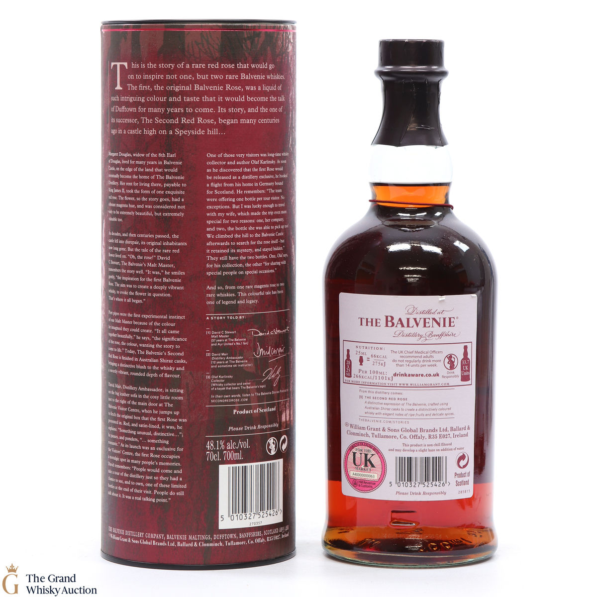 Inspired by the history of Balvenie Castle, this single malt was matured for a total of 21 years, being finished in Australian Shiraz Casks. The story of David C Stewart has created two extraordinary red roses, this is the second red rose and story number 5 in the series. Bottled at 48.1% ABV.