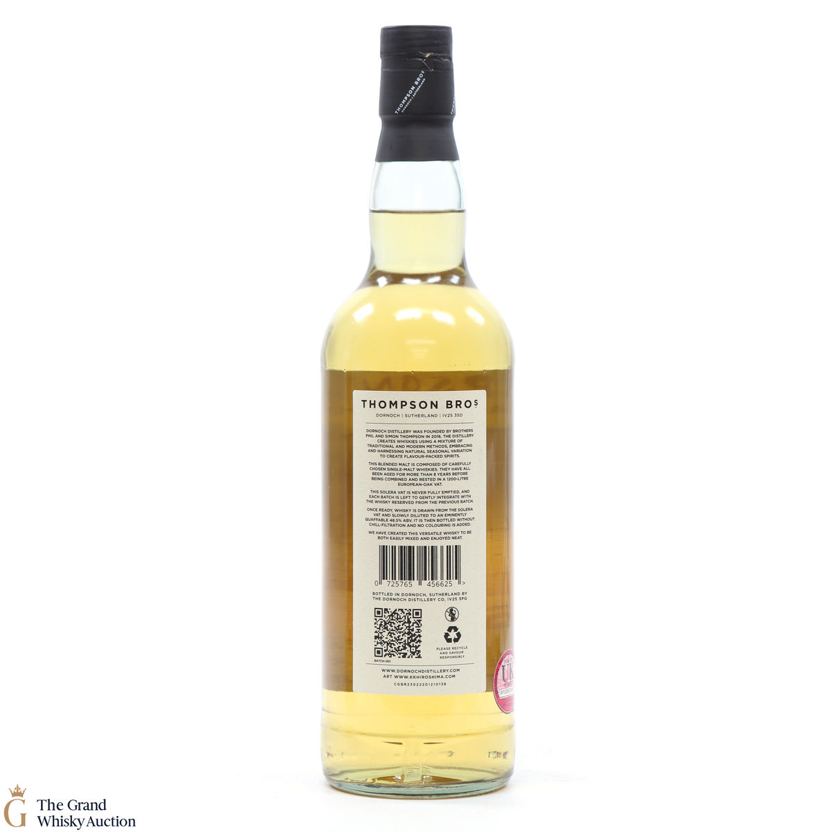 The Thompson Bros have used a toasted 1200-litre European oak in the process of creating this blended malt. Each time they bottle they use just two-thirds of the blend, leaving the base within the vat as the starter for the next batch. Aged for over 8 years and bottled at 48.5%.