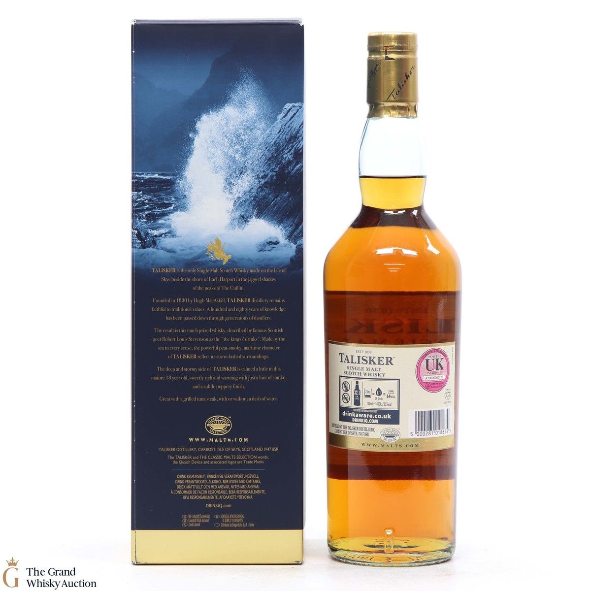 Time has mellowed but not tamed this powerful 18 year old Talisker, made beside Loch Harport in the shadow of the Cuillin range. A rich, sweet nose introduces familiar, smoky maritime aromas. Full-bodied, this smooth malt open sweetly, then becomes more assertive, with a whiff of smoke. It has an unmistakeable, richly warming finish, more subtle here than in the 10 year old.