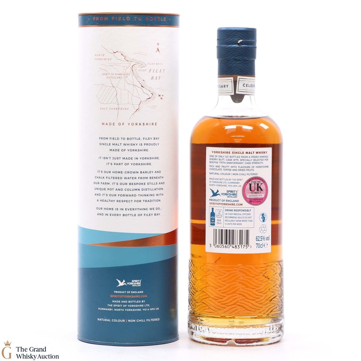 Filey Bay in Yorkshire has produced this special release from a px sherry cask #175 which was filled on in October 2016. Bottled at 62.5% ABV in April 2022. This special release is for the Booth's 175th Anniversary Edition.