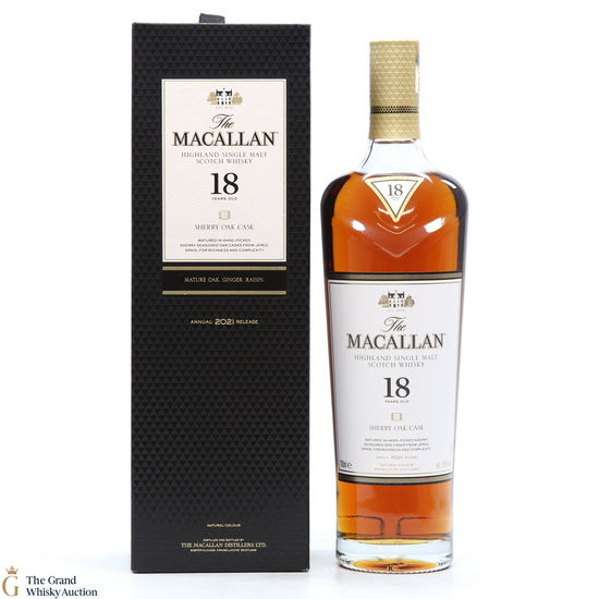 This annual release of The Macallan's popular 18 Year Old Sherry Oak is matured exclusively in sherry seasoned casks, built from both Spanish and American oak, providing a beautifully dark flavour with rich aromas.