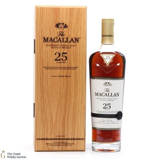 This is the 2019 edition of Macallan's 25 Year Old Sherry Oak. It comes with a stunning wooden presentation box. It's matured exclusively in hand-picked sherry oak casks from Jerez for a quarter of a century.