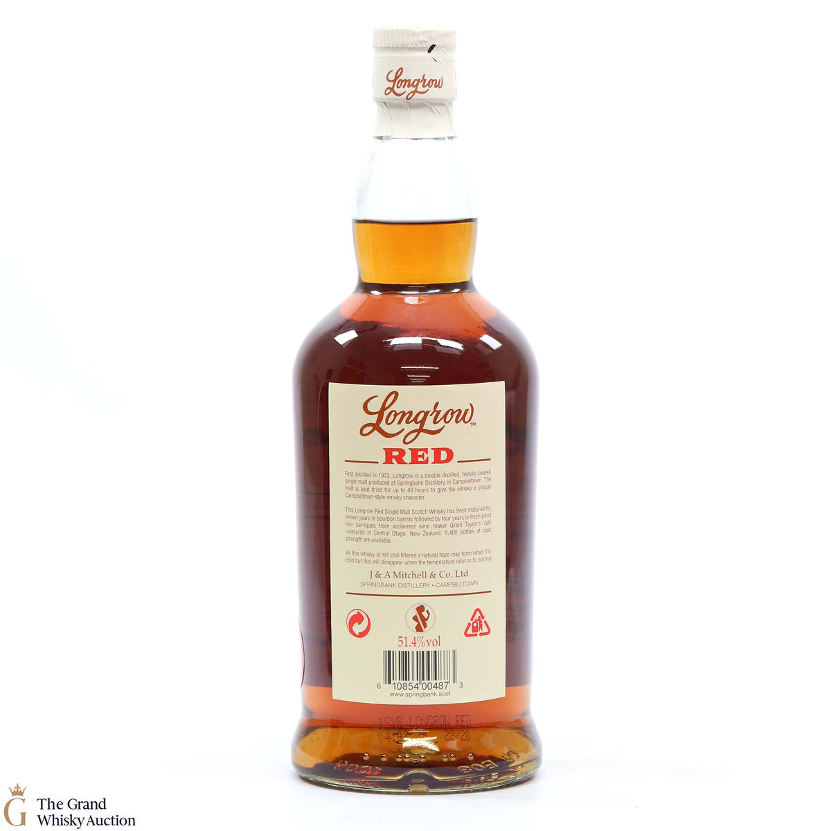 Springbank Longrow Red, is always bottled at cask strength, is released annually in small quantities and every year a different type of red wine cask is used to mature the whisky.